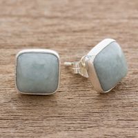 Natural Apple Green Maya Jade and Silver 925 Stud Earrings 'Apple Green Symmetry' Item ID: 2671778147