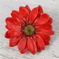 Natural Aster Flower Brooch in Cardinal Red from Thailand 'Let It Bloom in Cardinal Red' Item ID: 2669926204