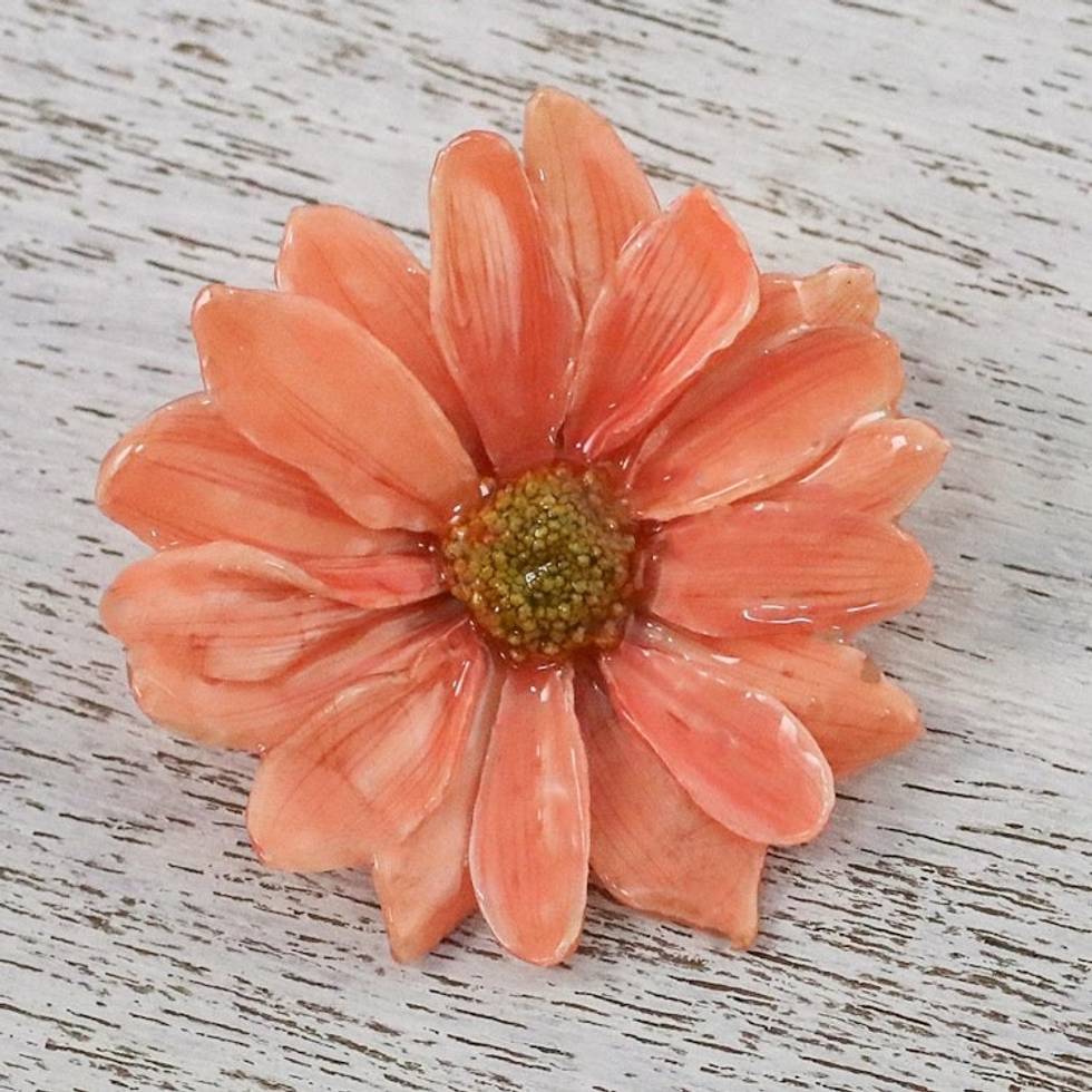 Natural Aster Flower Brooch in Peach from Thailand 'Let It Bloom in Peach' Item ID: 2669925776