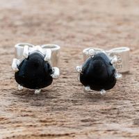 Natural Black Jade Stud Earrings 'Trillium in Black' Item ID: 2671772072