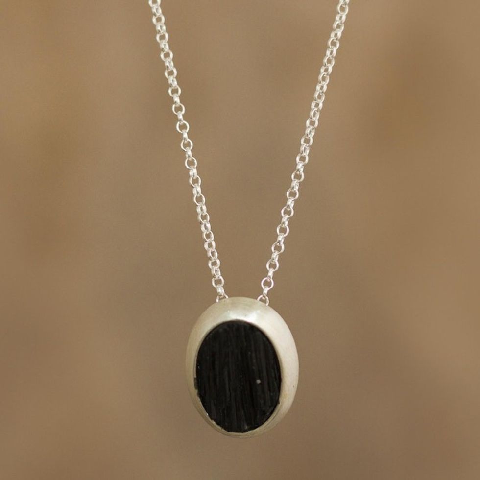 Natural Black Tourmaline Pendant Necklace 'Elegant Black' Item ID: 2671691692