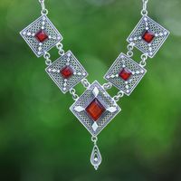 Natural Carnelian Cabochon Link Pendant Necklace 'Fiery Prima Donna' Item ID: 2671796626