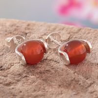 Natural Carnelian Sterling Silver Stud Earrings from Peru 'Fire Dots' Item ID: 2669919337
