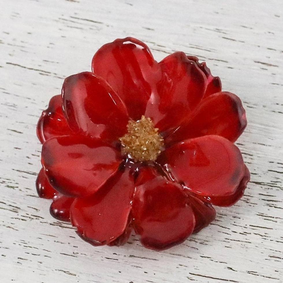 Natural Cosmos Flower Brooch in Crimson from Thailand 'Blooming Cosmos in Crimson' Item ID: 2669926437