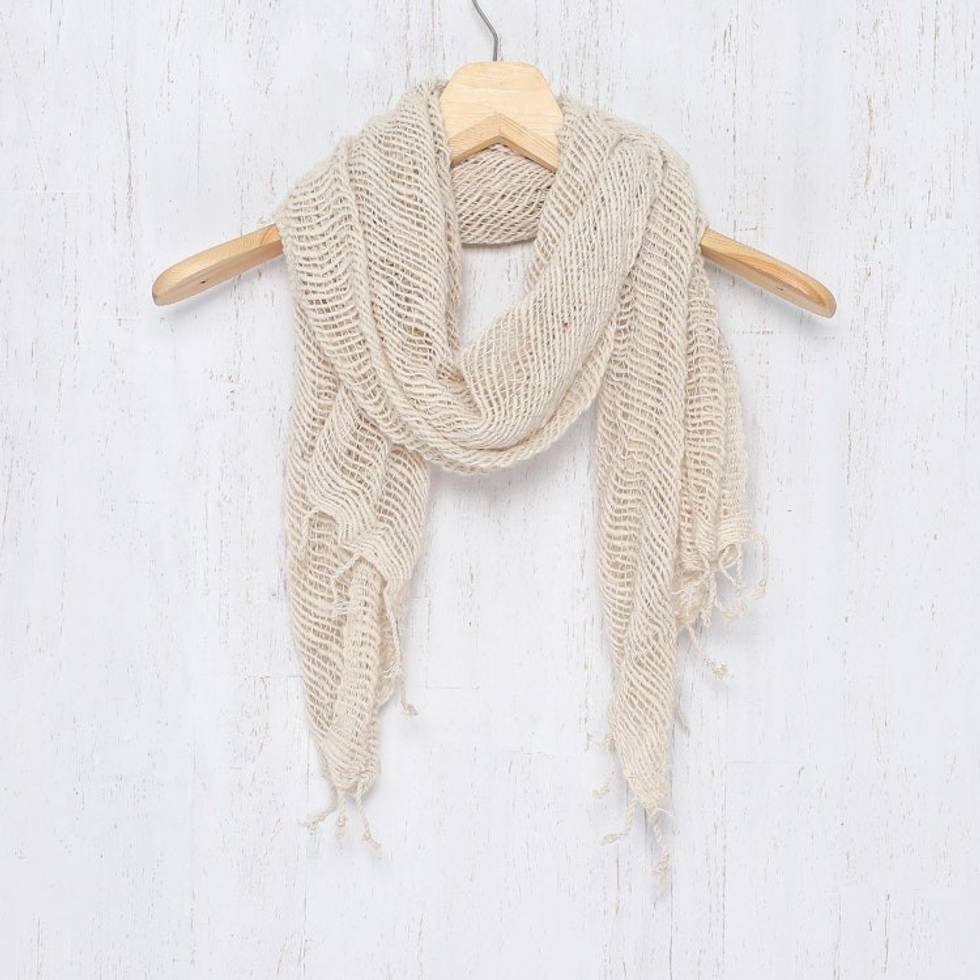 I've searched for a scarf such as this one for so many years and could barely believe my luck when I found it here. This is a beautiful piece of wearable art. I'm so incredibly grateful to the artisan for making such an airy, simple and elegant garment that effortlessly dresses up any outfit. It's one of those pieces that makes you look pulled together without trying too hard. It also will be great for summer to keep my neck from getting a chill in air conditioning.Make sure you gently hand wash before wearing as the cotton tends to shed a bit at first.