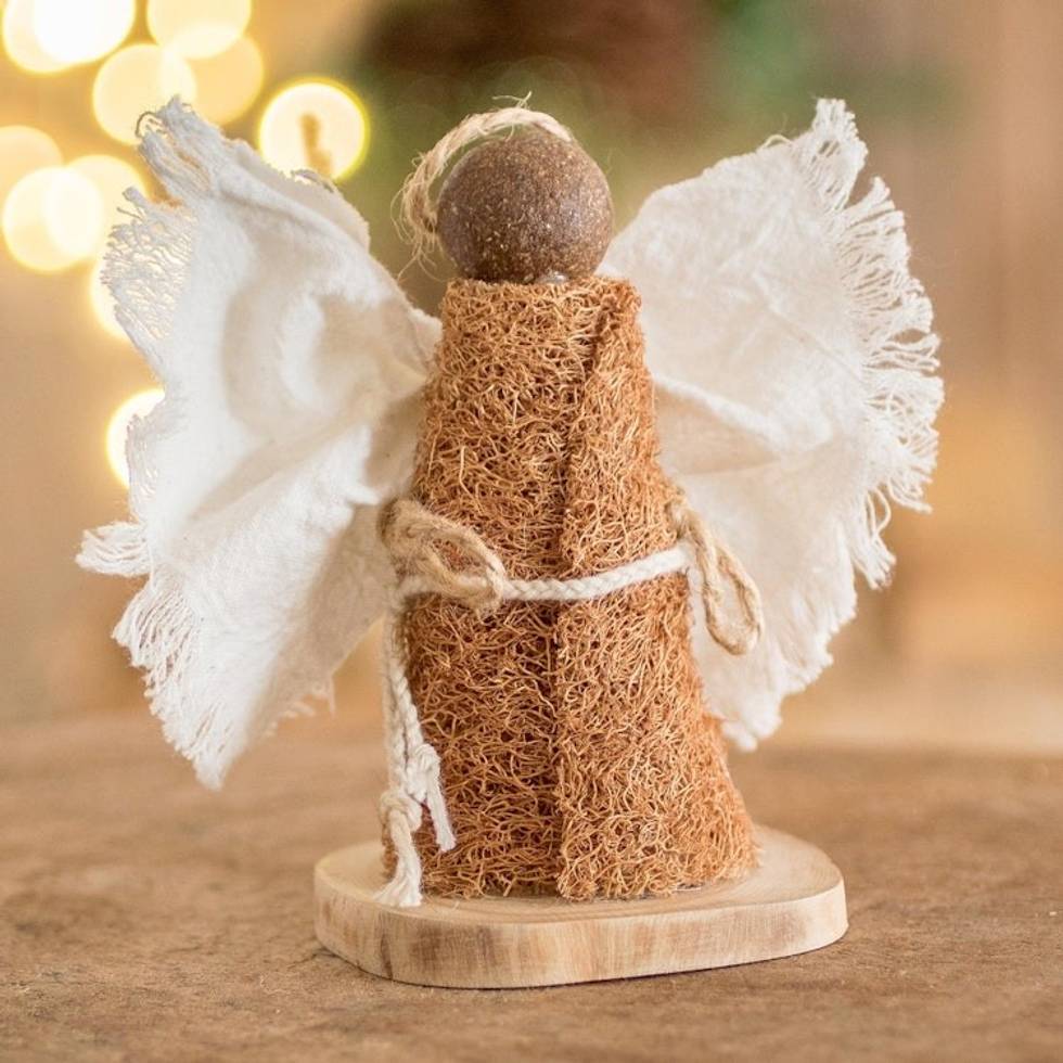 Natural Fiber Minimalist Angel Statuette From El Salvador 'Nativity Messenger' Item ID: 2671777189