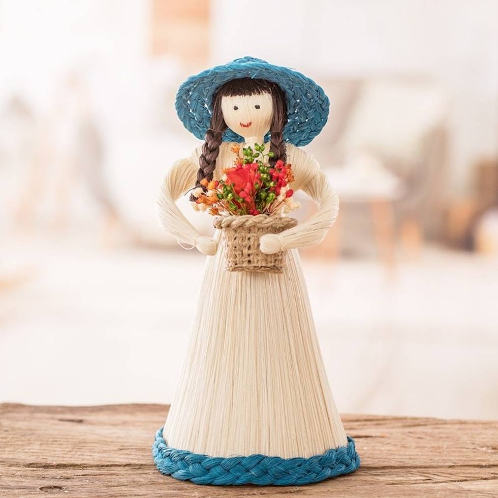 Natural Fiber Statuette of a Woman Gathering Flowers 'Country Flowers' Item ID: 2671776959