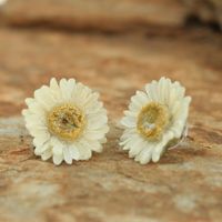 Natural Flower Button Earrings 'White Aster' Item ID: 2671803148