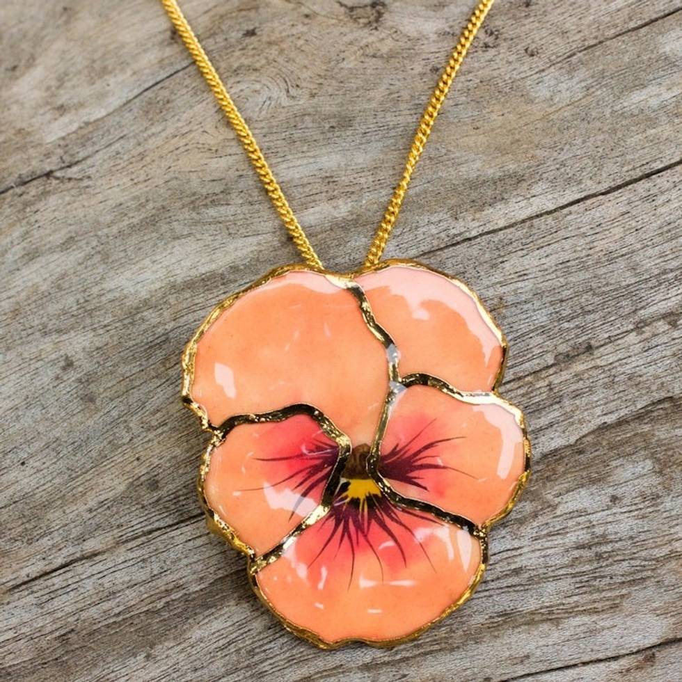 Natural Flower Pendant Necklace from Thailand 'Peach Pansy' Item ID: 2671802800