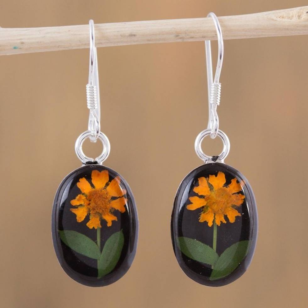 Natural Flower Sunflower Dangle Earrings from Mexico 'Sunny Sunflowers' Item ID: 2669932234