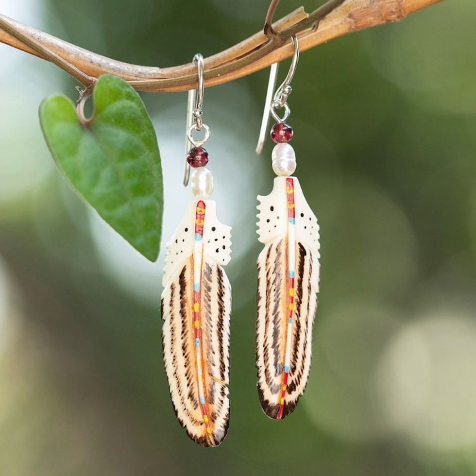 These exquisitely hand painted bone feather earrings are truly Art.They were exactly as shown online, even more beautiful to see in real life. I LOVE THESE I recommend the artist from Bali, Ayu Ary.Thank you for you gift of being a Maker!!