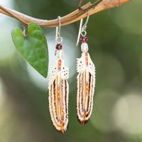 Natural Garnet and Cultured Pearl Feather Dangle Earrings 'Rich Feathers' Item ID: 2671584804