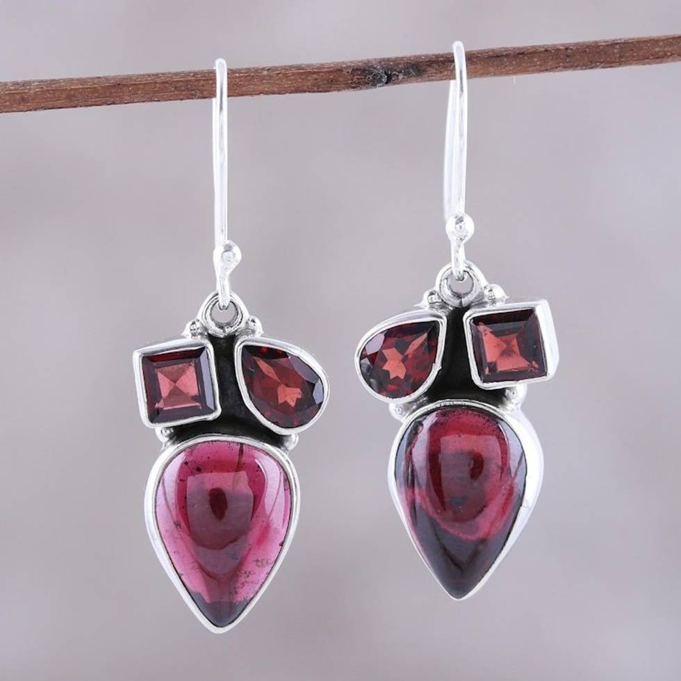 Natural Garnet Dangle Earrings from India 'Natural Dazzle' Item ID: 2671792542