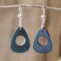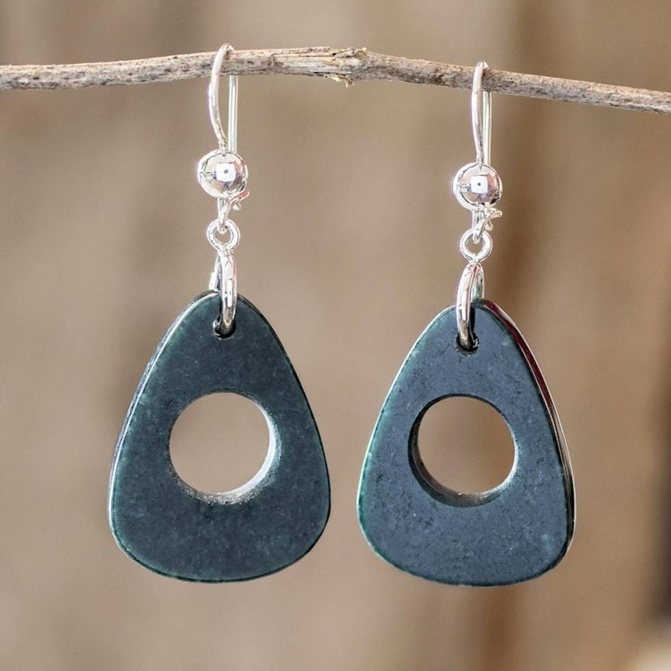 Natural Green Jade Dangle Earrings 'Strum in Dark Green' Item ID: 2671776863