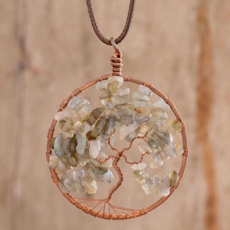 Natural Labradorite Gemstone Tree Pisces Pendant Necklace 'Pisces Tree of Life' Item ID: 2671777126