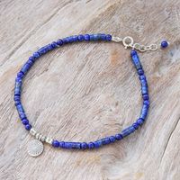 Natural Lapis Lazuli Beaded Anklet with Silver Charm 'True Charm' Item ID: 2669927432