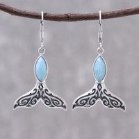 Natural Larimar Dangle Earrings from Thailand 'Whale Elegance' Item ID: 2671798476