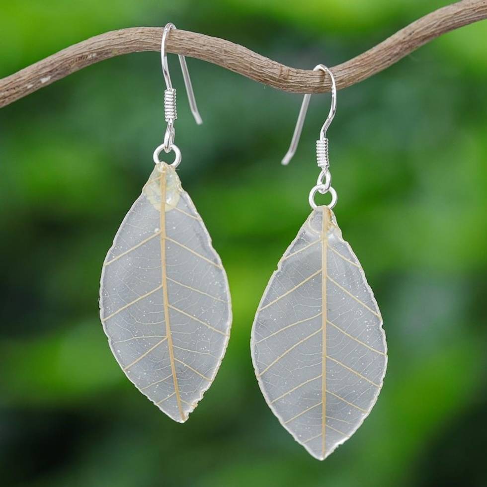 I liked these earrings so much and the price point was so reasonable that I bought a second pair on sale. I know that there is a real leaf encased in the plating, so if the first pair wears out I will have another one ready. I know exactly what leaf this artist chose to preserve: Dischidia ruscifolia, a vining relative of the Hoya family which is very popular among plant collectors. I do grow this plant along with many Hoyas. A hanging basket overflowing with this Dischidia's vines appears as thousands of tiny green hearts, and gives rise to the common name of the "thousand hearts vine." I own several pieces of jewelry from this artist and these earrings are of the same high quality construction as his other work.