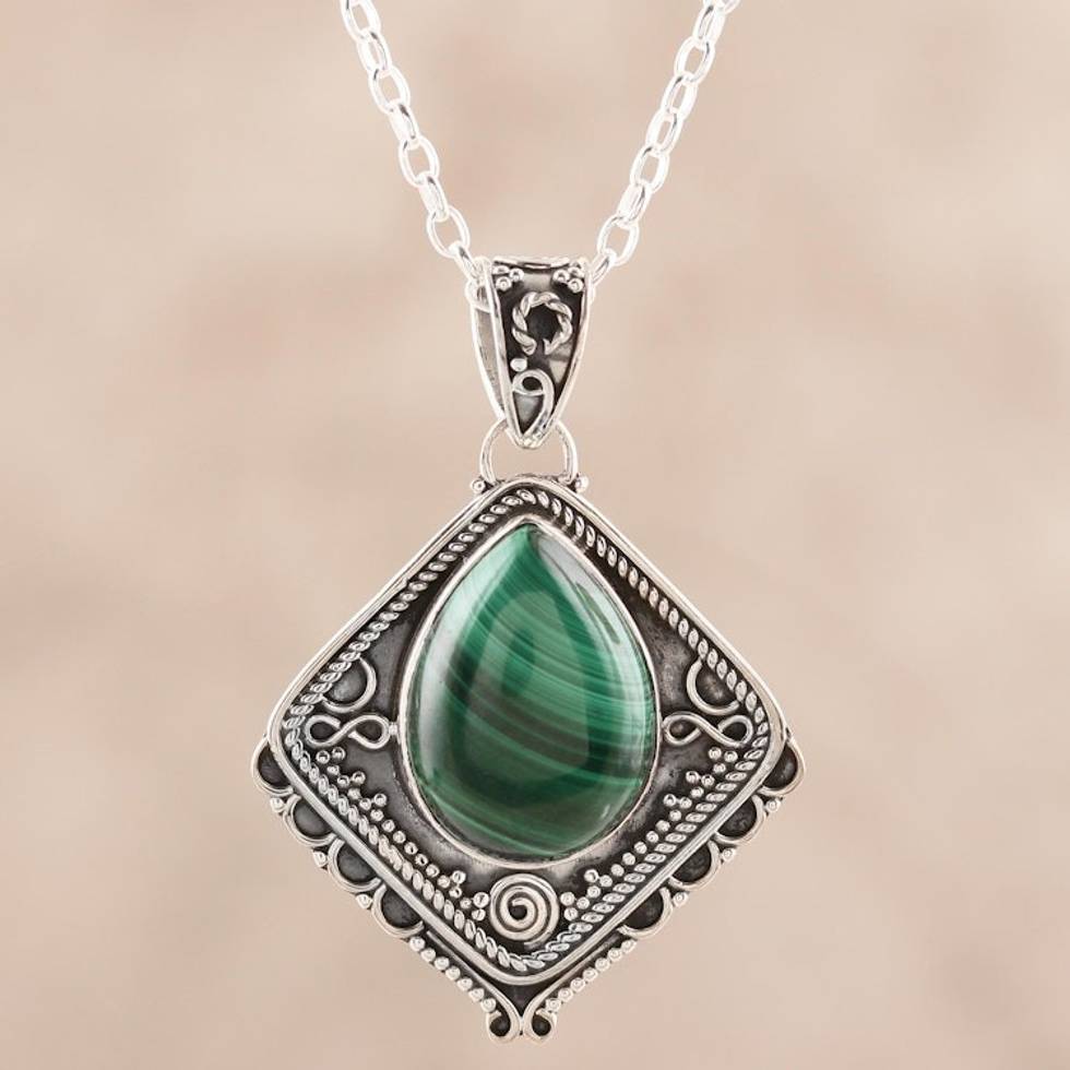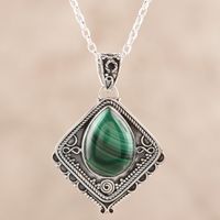 Natural Malachite and Sterling Silver Pendant Necklace 'Green Kite' Item ID: 2669923798