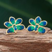 Natural orchid gold-plated flower earrings 'Aqua Perfection' Item ID: 2671640807