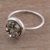 Natural Pyrite and Sterling Silver Cocktail Ring from Peru 'Rocky Mountains' Item ID: 2671691506