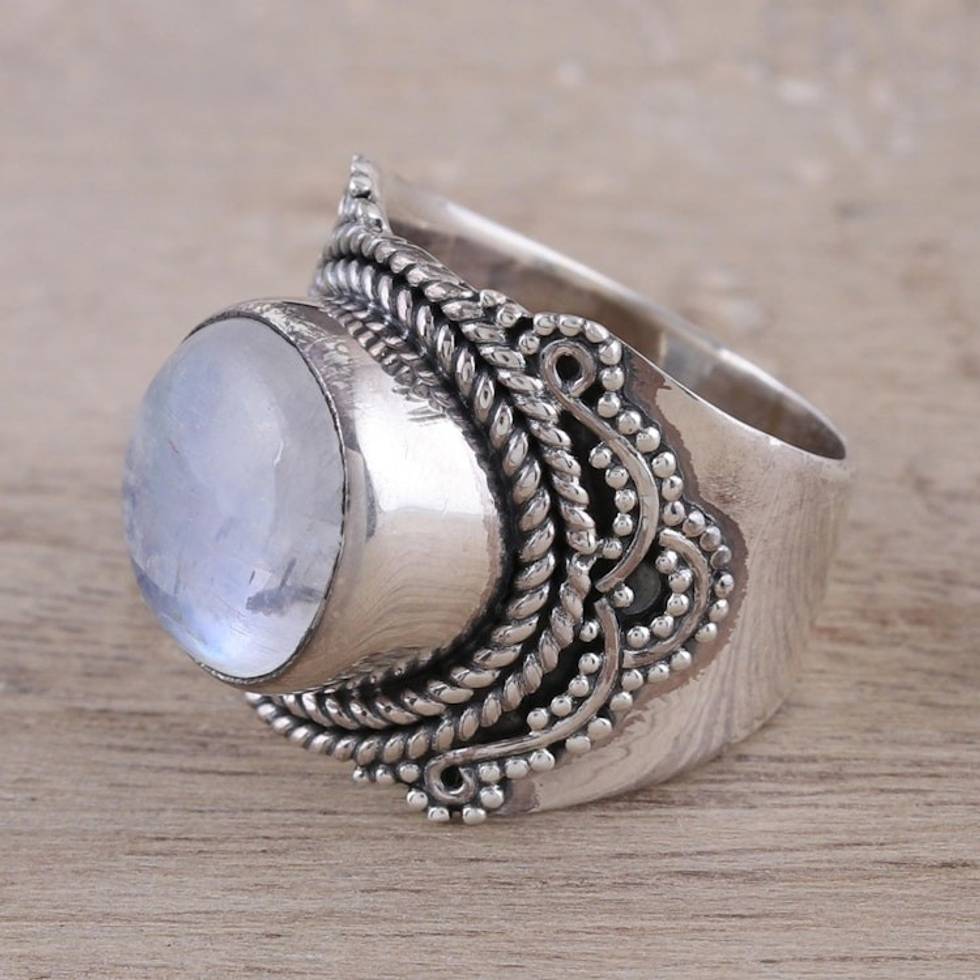 Natural Rainbow Moonstone Cocktail Ring from India 'Rainbow Moonstone Glamour' Item ID: 2671792499