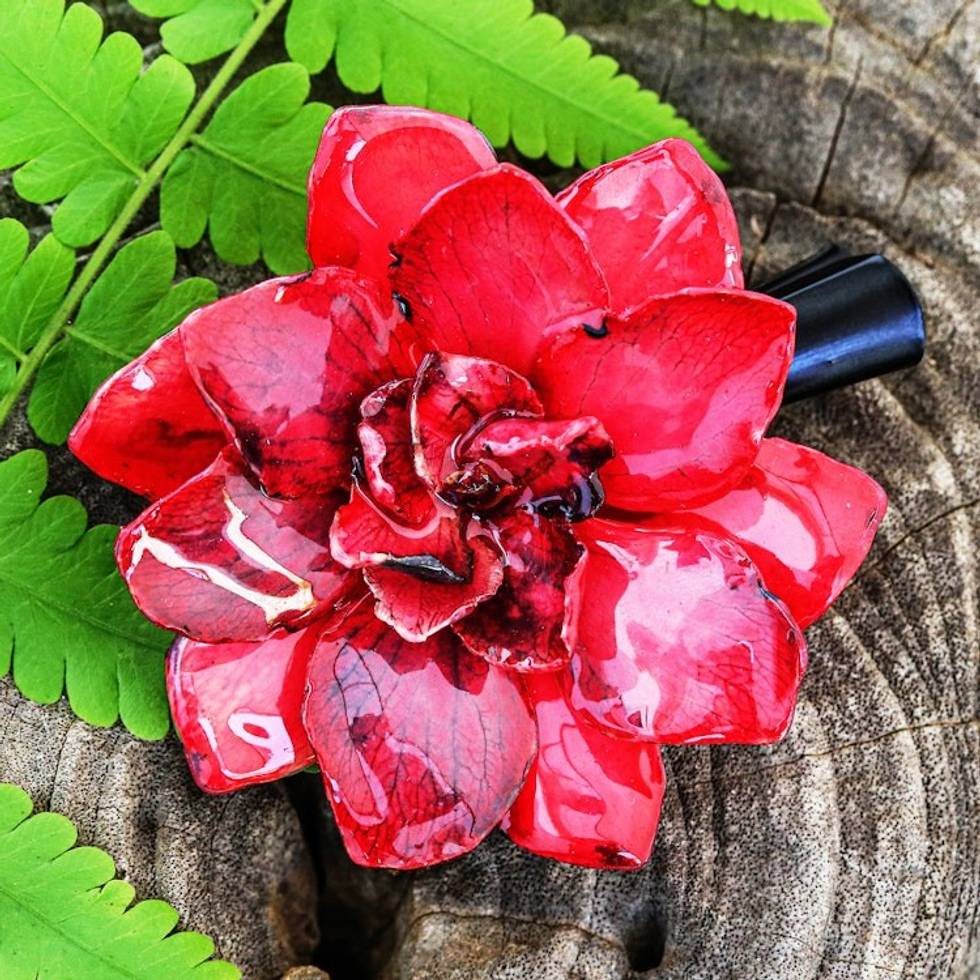 Natural Red Gardenia Flower Hair Clip Handmade in Thailand 'Gardenia Passion' Item ID: 2671796754
