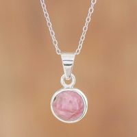 Natural Rhodonite and Silver Necklace 'Memorable Moon in Pink' Item ID: 2671772036