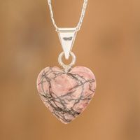 Natural Rhodonite Pendant Necklace 'Pink Maya Heart' Item ID: 2671772146