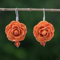 Natural Rose Dangle Earrings in Orange from Thailand 'Floral Temptation in Orange' Item ID: 2671800938