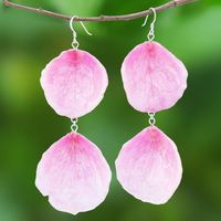 Natural Rose Dangle Earrings in Pink from Thailand 'Pretty Rose in Pink' Item ID: 2671799152