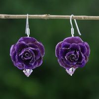 Natural Rose Dangle Earrings in Purple from Thailand 'Floral Temptation in Purple' Item ID: 2669927975