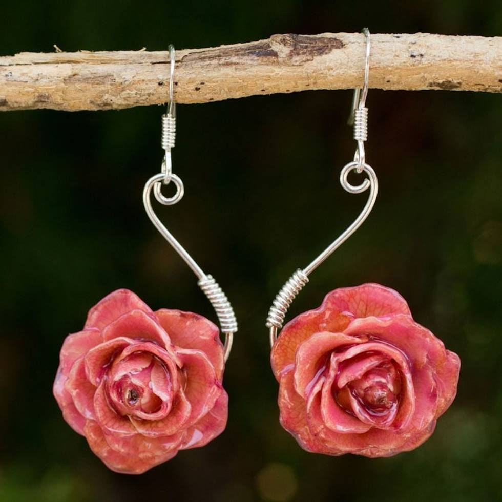 Natural rose flower earrings 'Rose Romance' Item ID: 2671802631