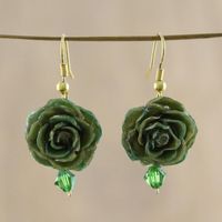 Natural rose flower earrings 'Timeless Green' Item ID: 2671803006