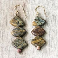 Natural Soapstone and Bauxite Beaded Dangle Earrings 'Fascinating Delight' Item ID: 2671816117