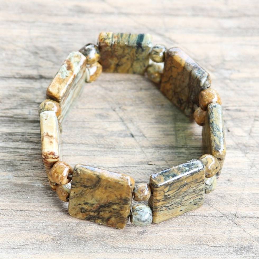 Natural Soapstone Beaded Beaded Stretch Bracelet from Ghana 'Natural Squares' Item ID: 2671805735