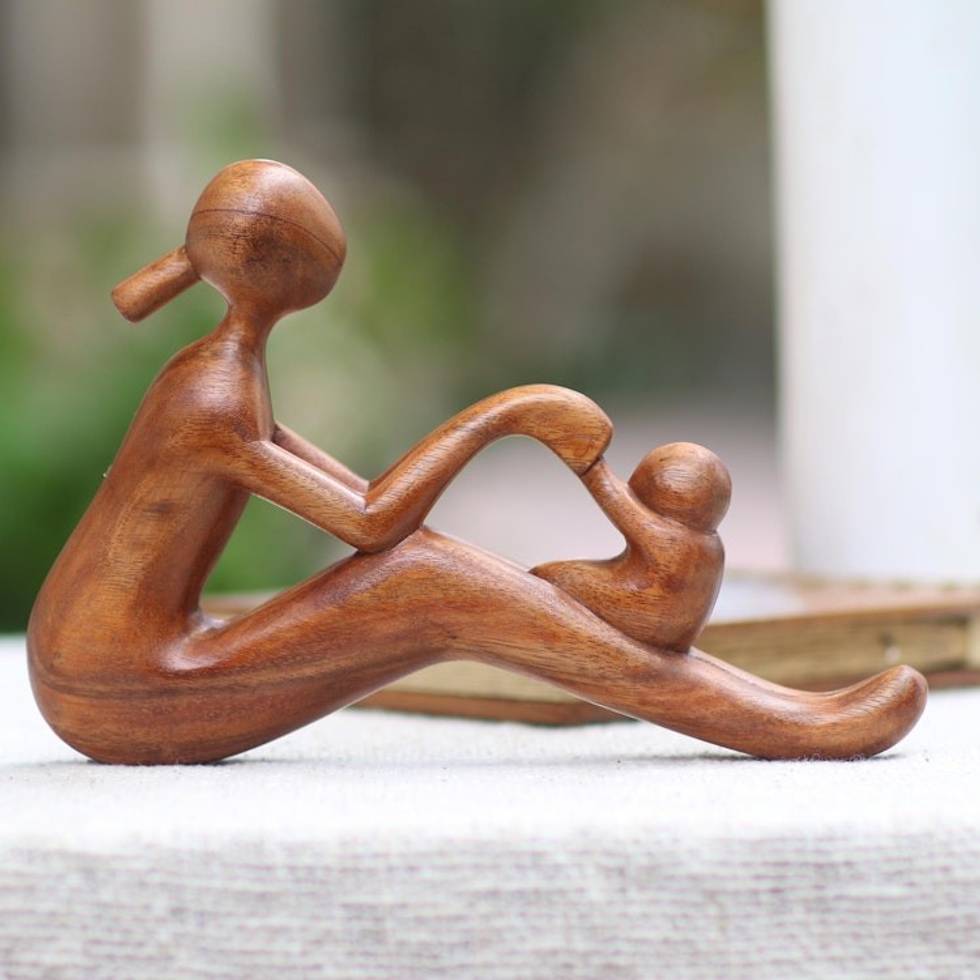 Natural Suar Wood Mother and Child Sculpture from Bali 'Mom and Infant' Item ID: 2671821339