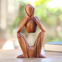 Natural Suar Wood Sculpture of Bored Figure 'Boredom' Item ID: 2671820858