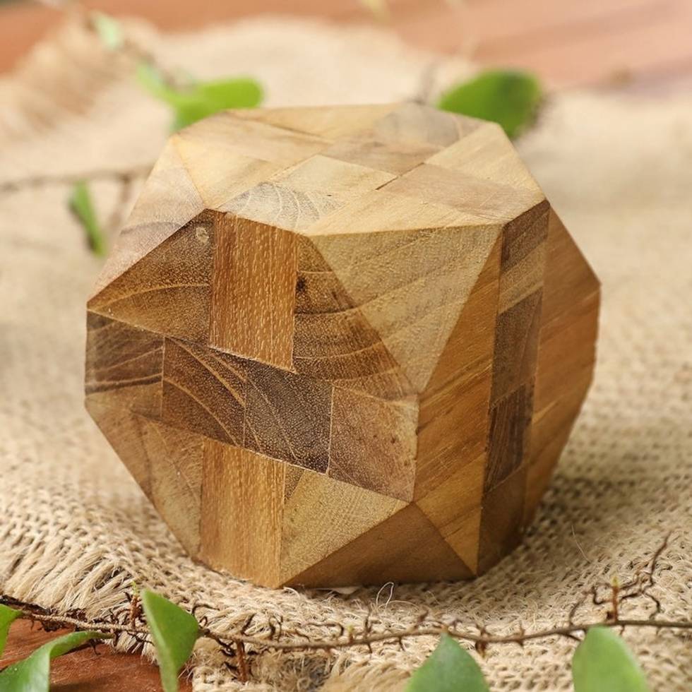 Natural Teak Wood Block Puzzle Handmade in Java 'Truncated Cube' Item ID: 2671702578