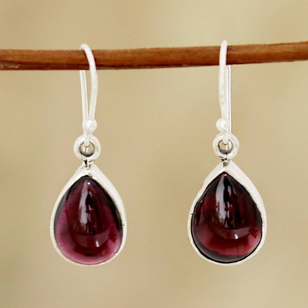 Natural Teardrop Garnet Dangle Earrings from India 'Red Glimmer' Item ID: 2669943930