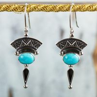 Natural Turquoise and Silver Dangle Earrings from Mexico 'History and Culture' Item ID: 2669931844