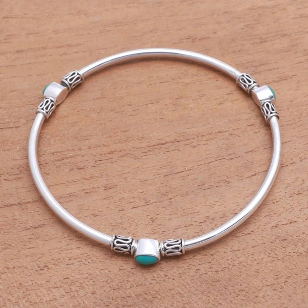 Natural Turquoise Bangle Bracelet from Bali 'Harmony of Three' Item ID: 2671480724