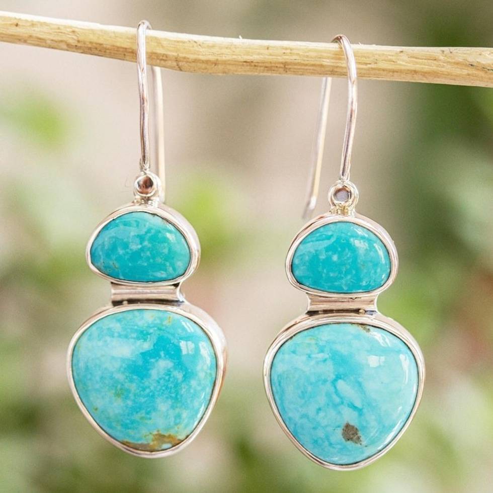 Natural Turquoise Taxco Sterling Silver Dangle Earrings 'Sky-Kissed Sea' Item ID: 2671808079