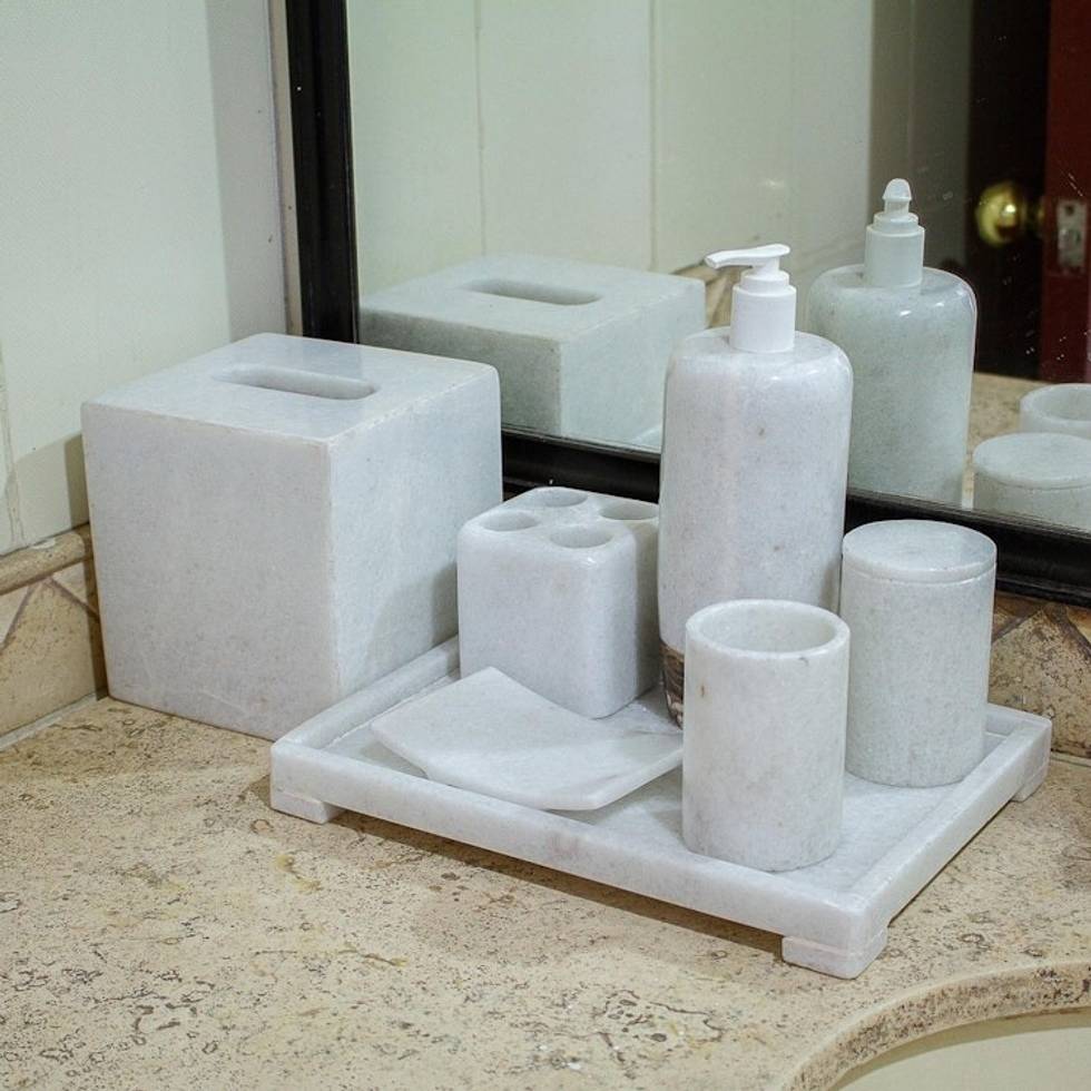 Natural White Marble and Onyx Bath Set 8 Pieces 'Elite' Item ID: 2671808320