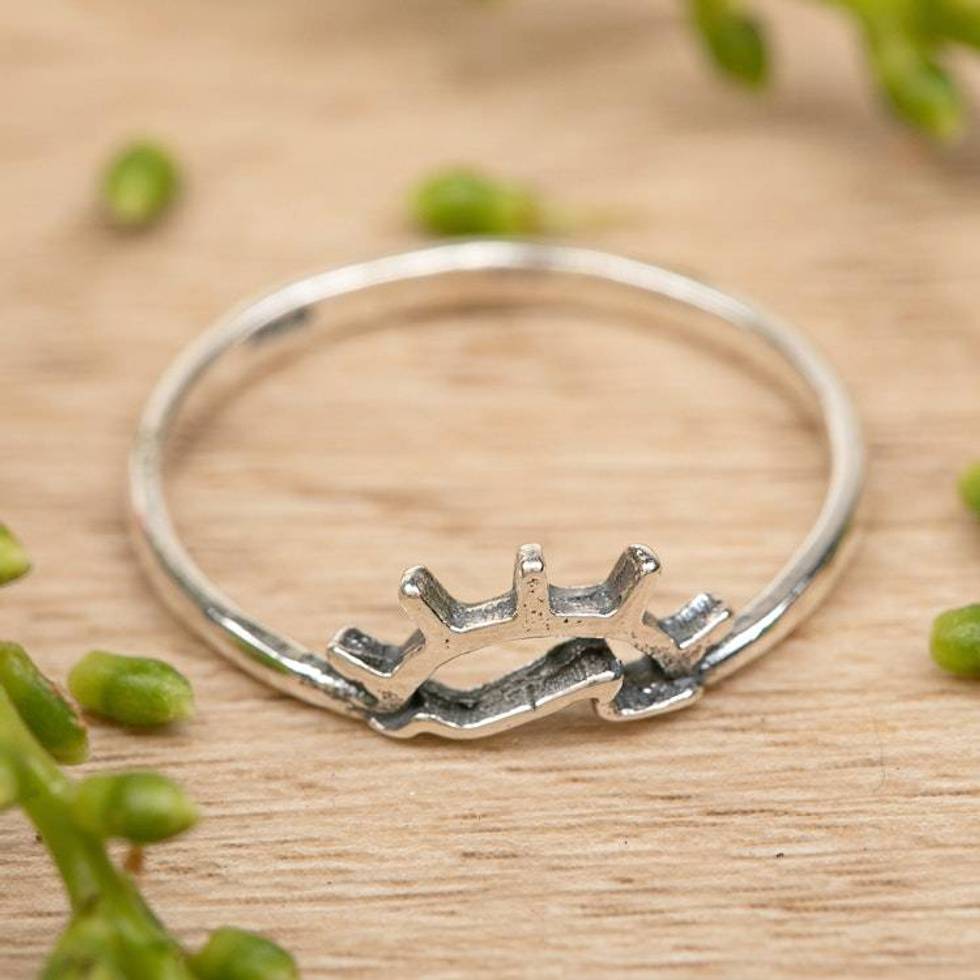 Nature-Themed Balinese-Made Sterling Silver Sunset Band Ring 'Sun Waves' Item ID: 2676667270