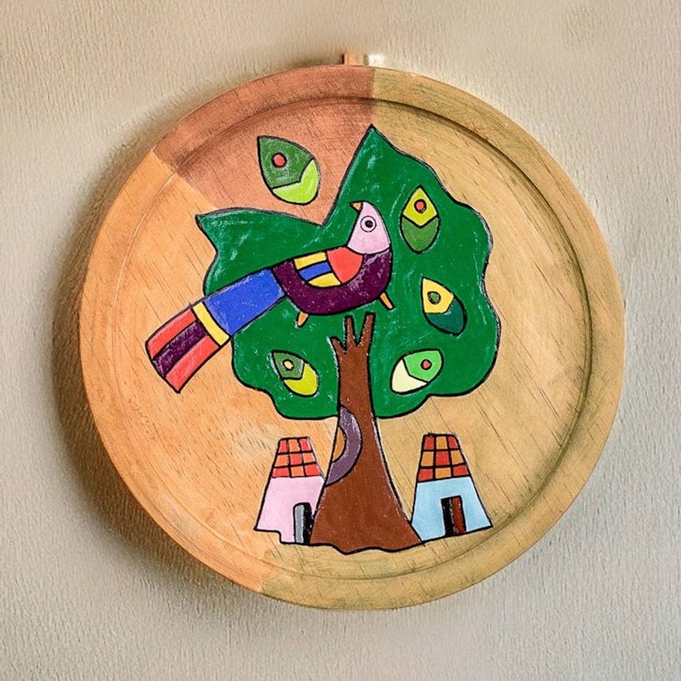 Nature-Themed Hand-Painted Round Decorative Pinewood Plaque 'Tropical Enchantment' Item ID: 2671769146