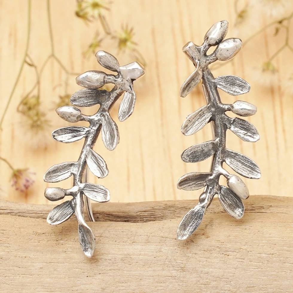 Nature-Themed Leafy Sterling Silver Ear Climber Earrings 'Orchid Leaves' Item ID: 2671765363