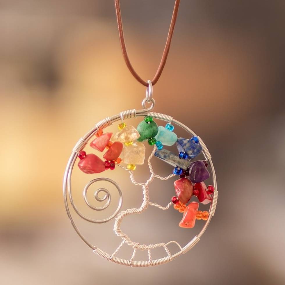 Nature-Themed Polished Multi-Gemstone Pendant Necklace 'Love Your Magical Nature' Item ID: 2669933749