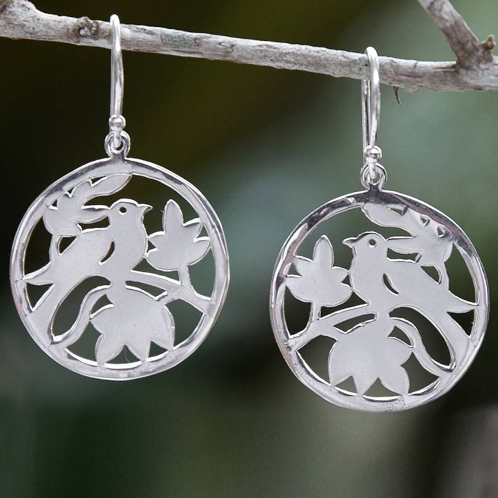 Nature-Themed Round Sterling Silver Dangle Earrings 'Morning Chorus' Item ID: 2669923404