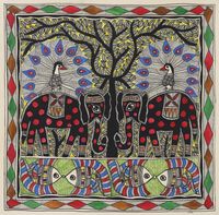 Nature-Themed Traditional Madhubani Painting from India 'Glorious Union' Item ID: 2671792154